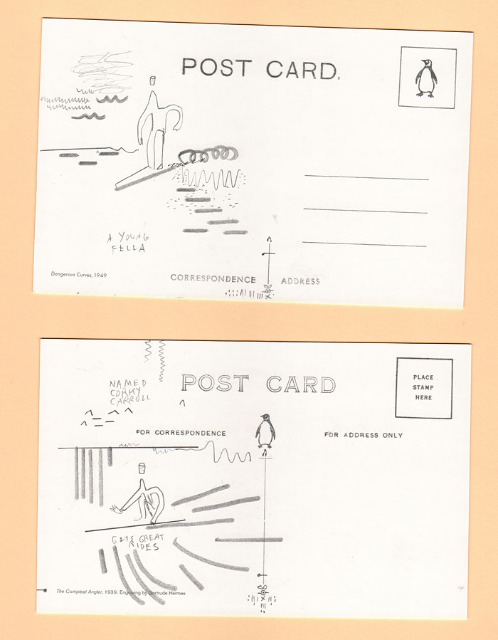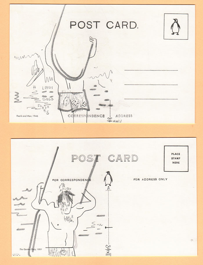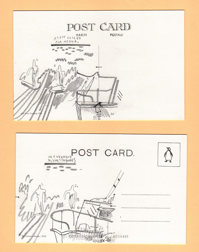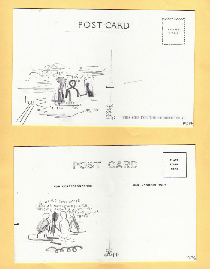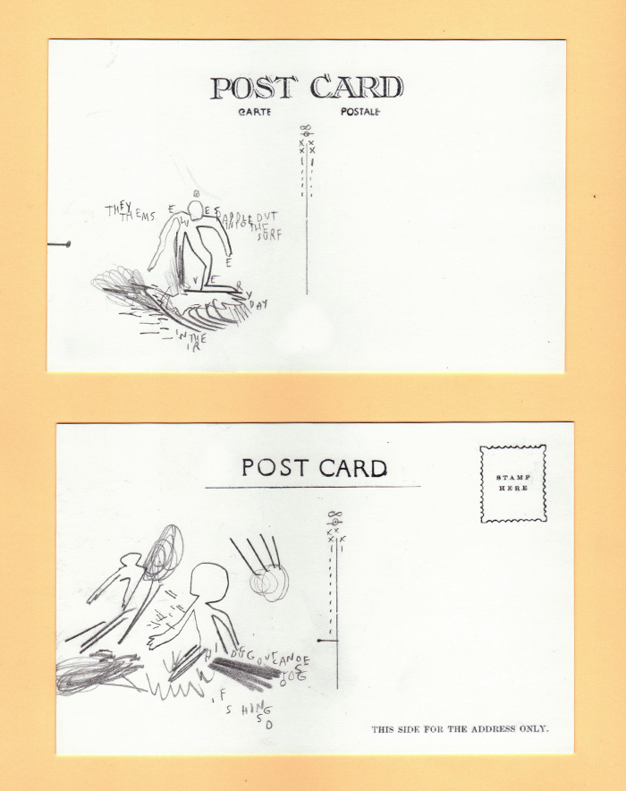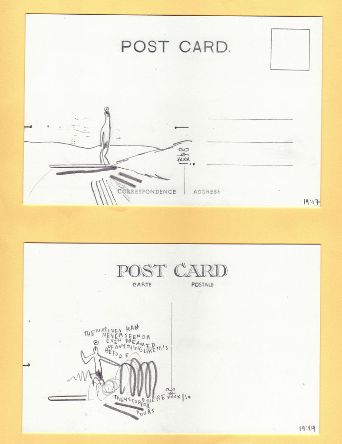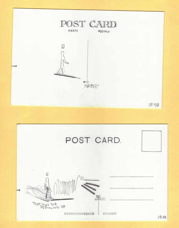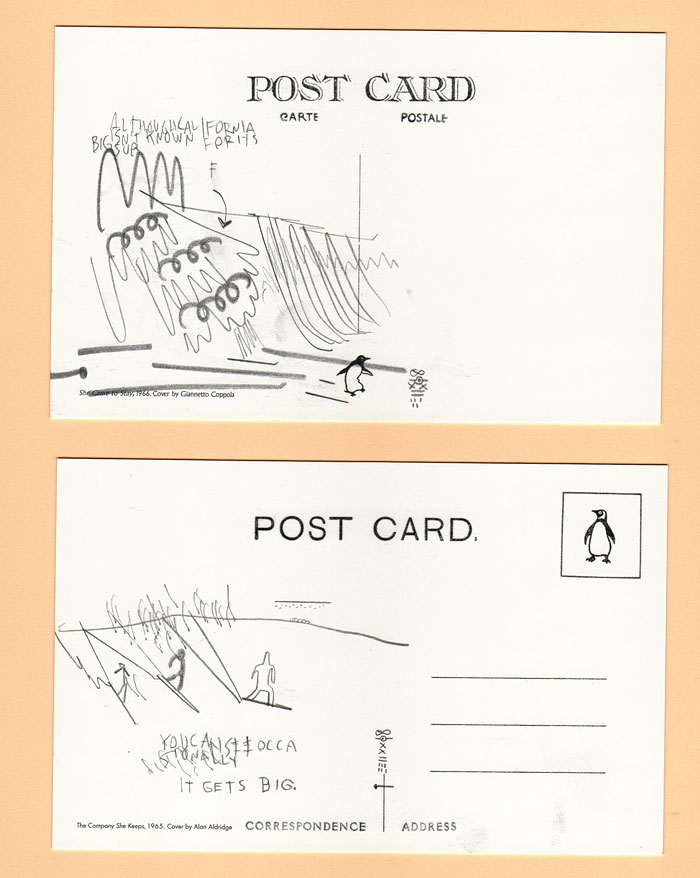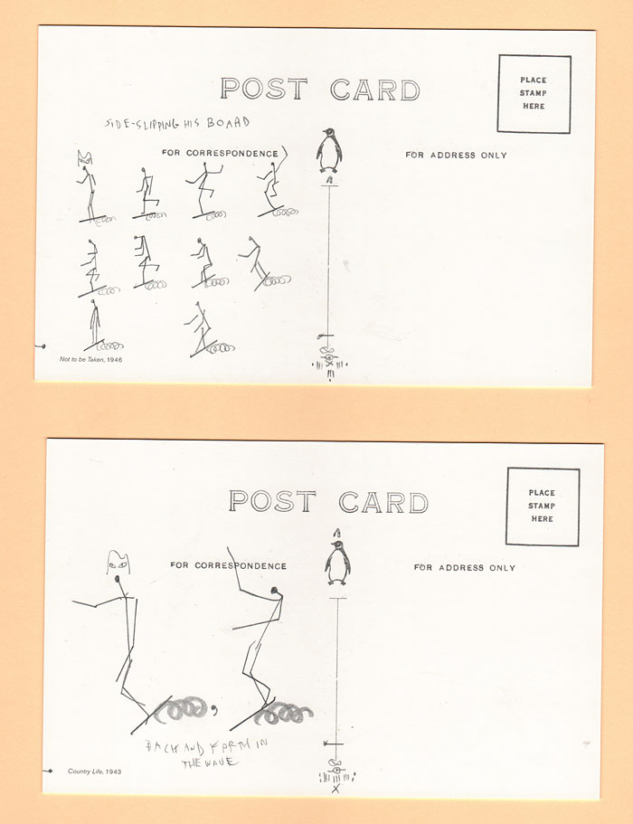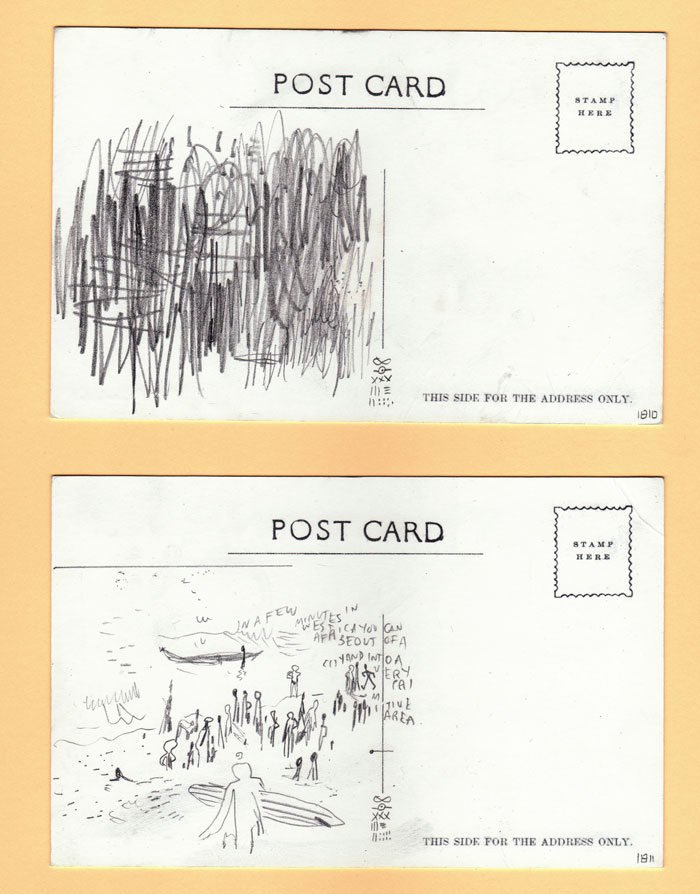 Every shot from Bruce Brown's 1966 film "The Endless Summer" drawn on postcards. More Endless Summer info here.