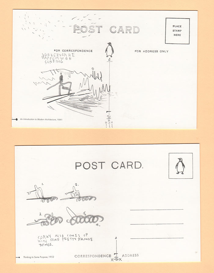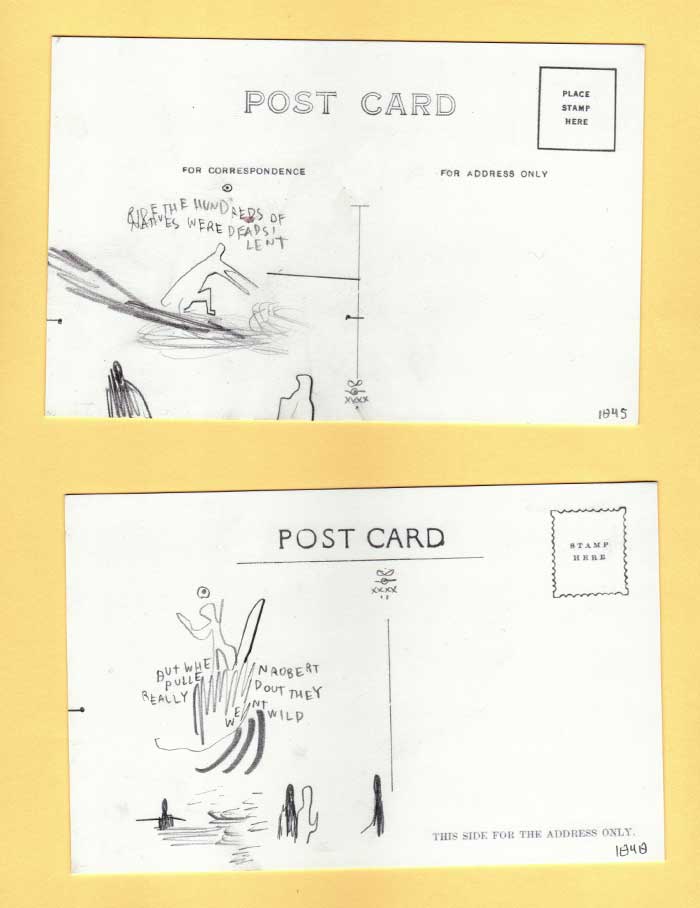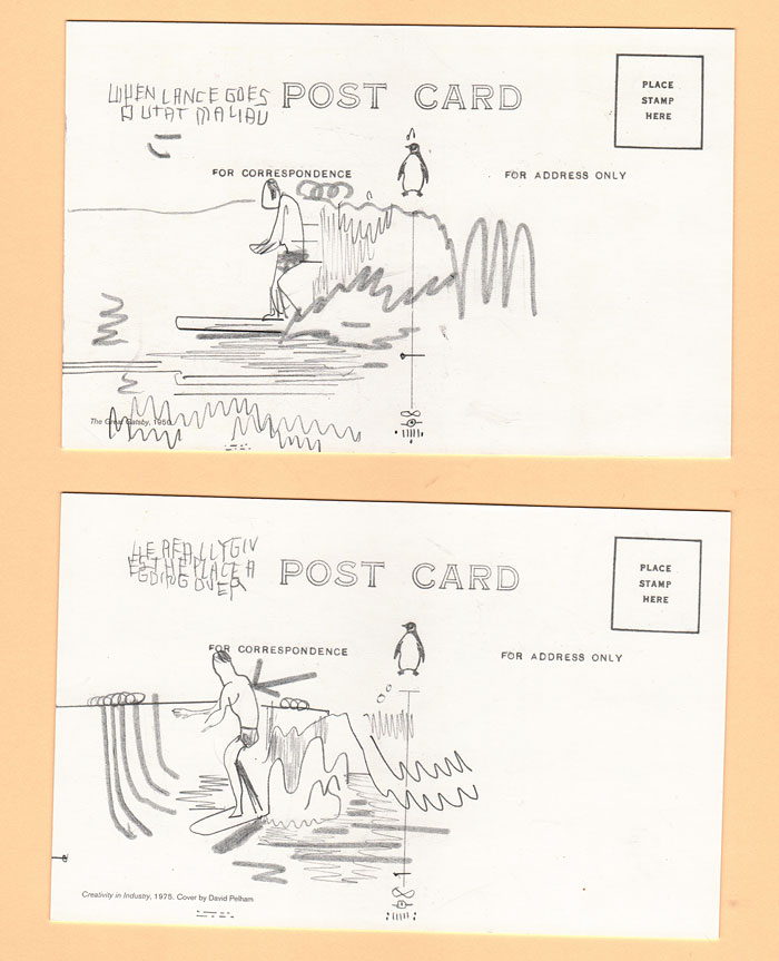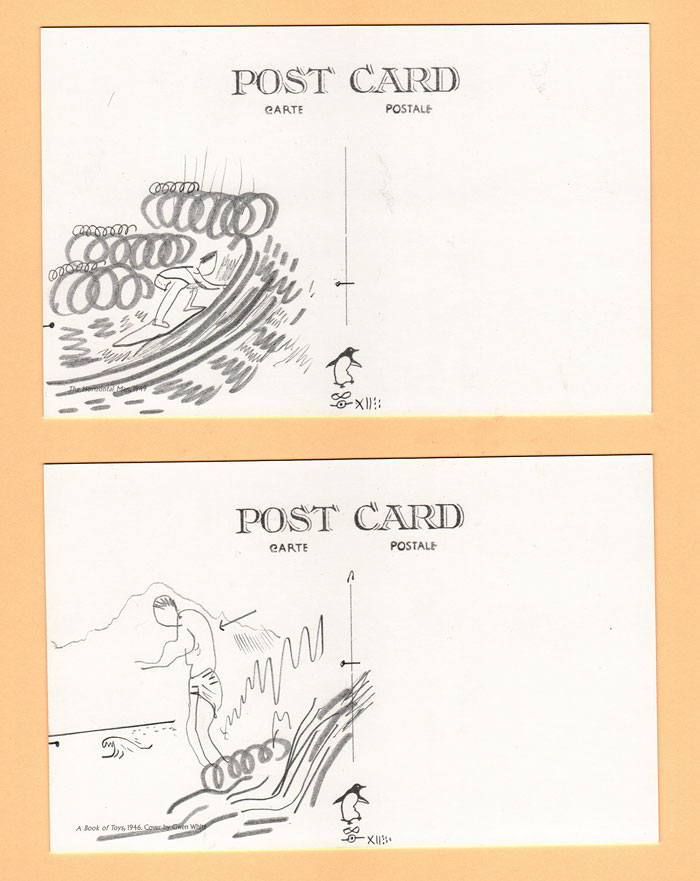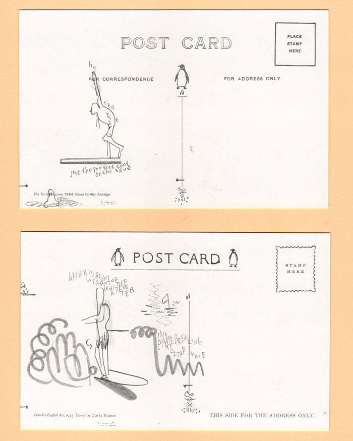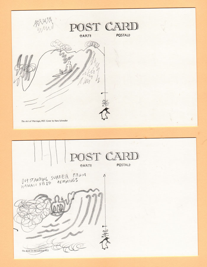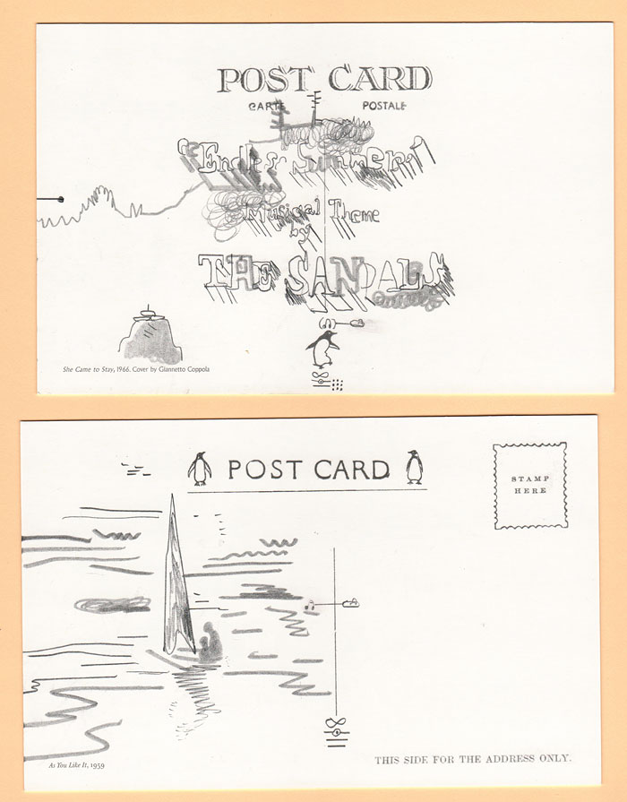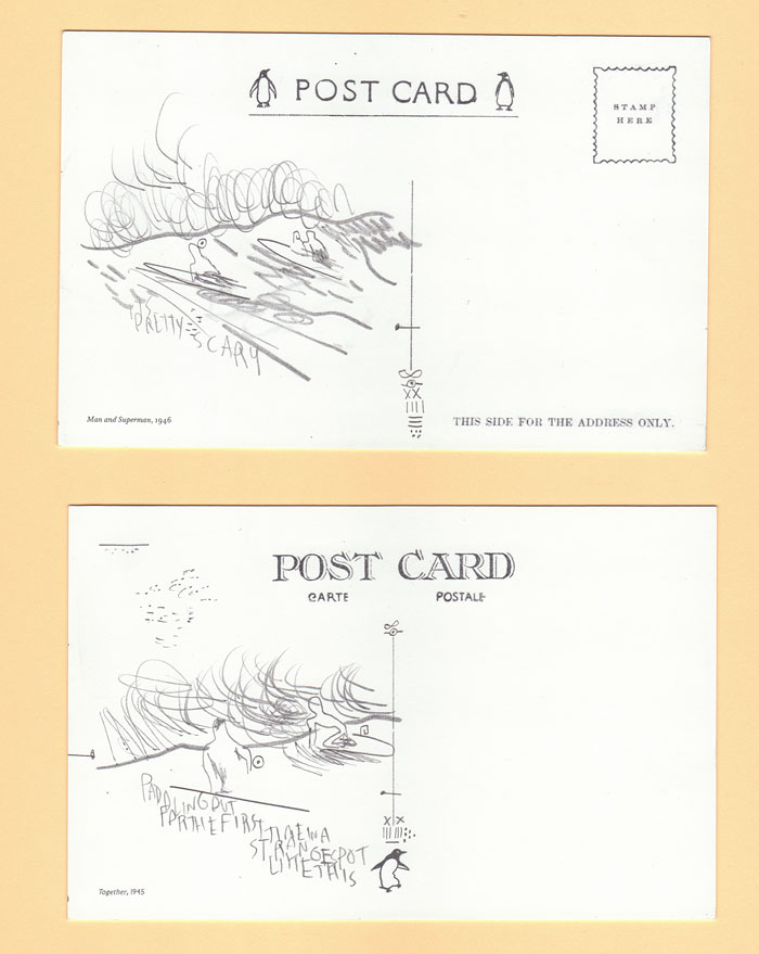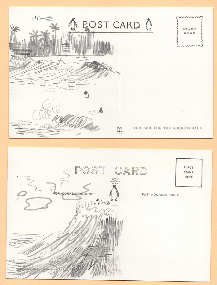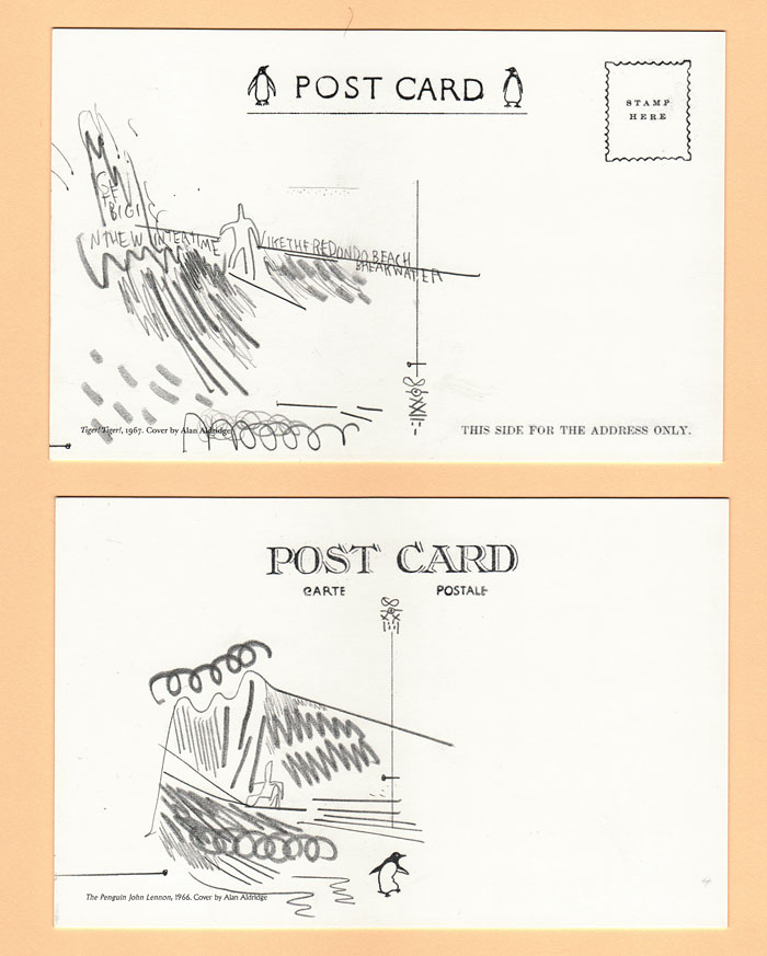 Every shot from Bruce Brown's 1966 film "The Endless Summer" drawn on postcards. More Endless Summer info here.