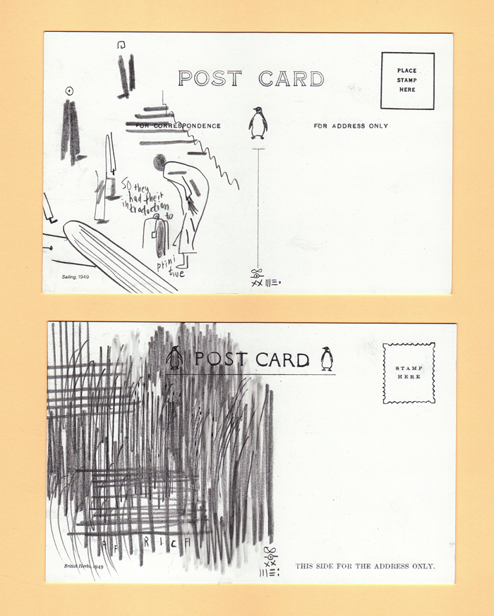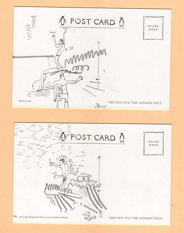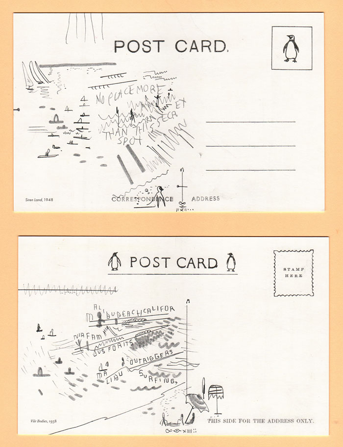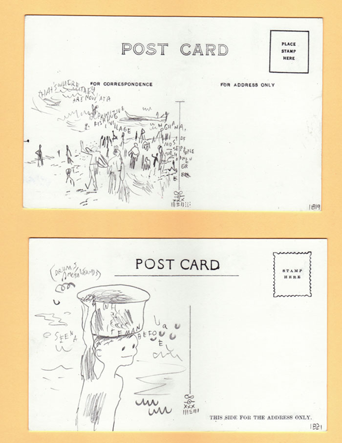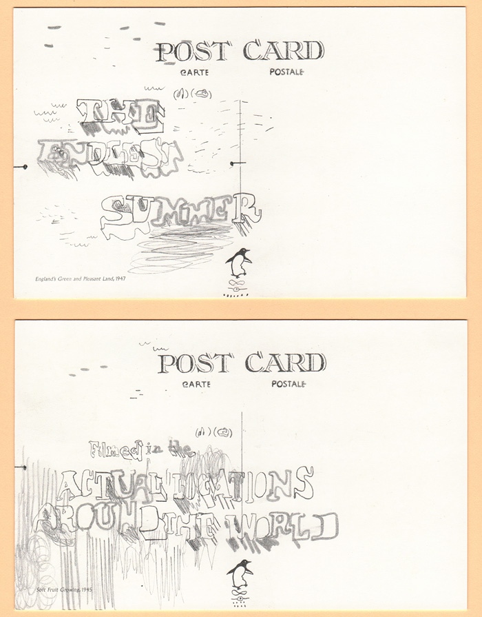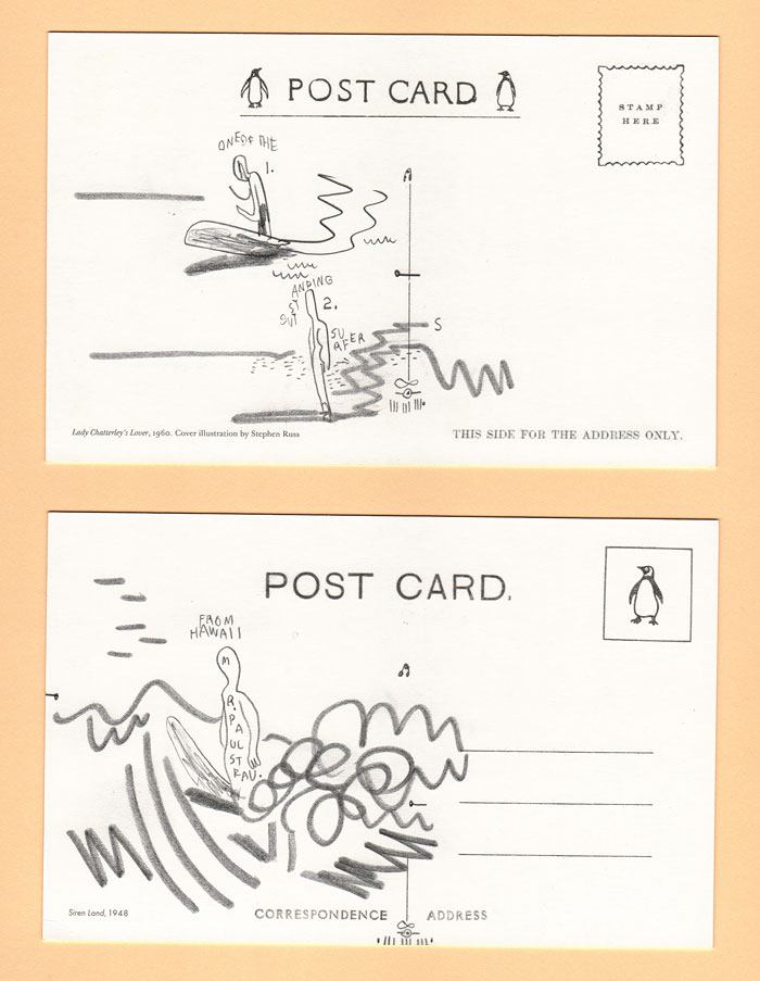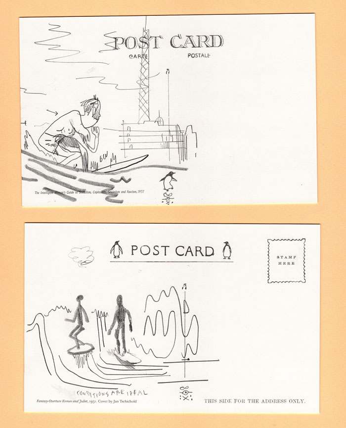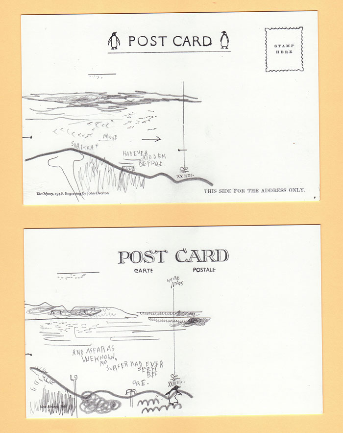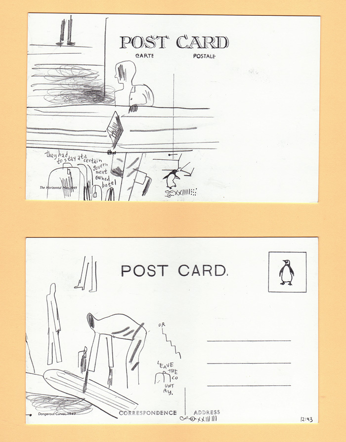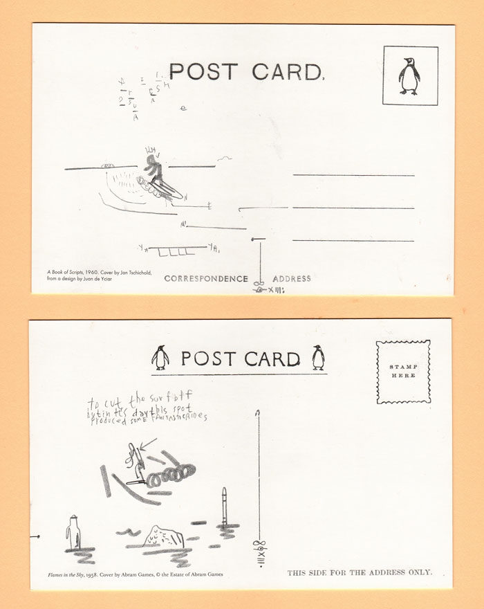 Every shot from Bruce Brown's 1966 film "The Endless Summer" drawn on postcards. More Endless Summer info here.