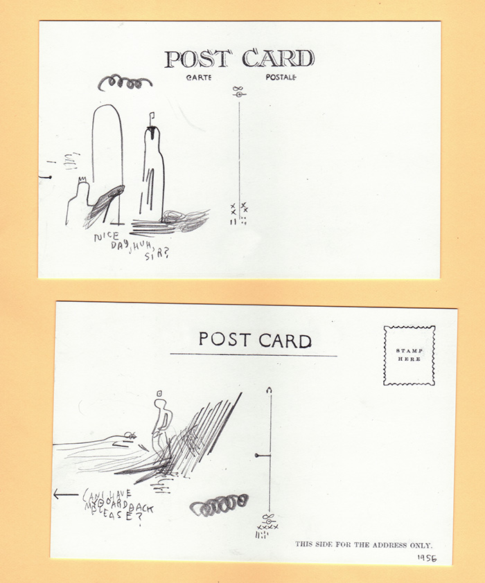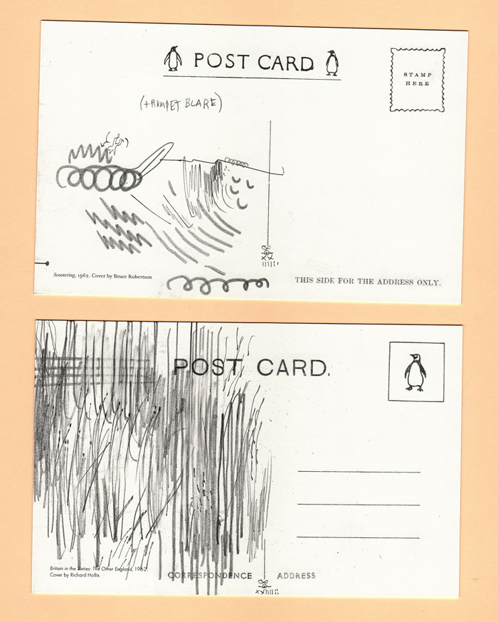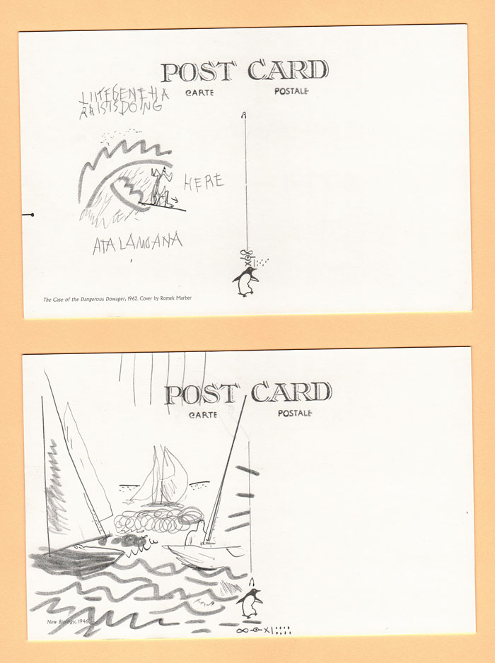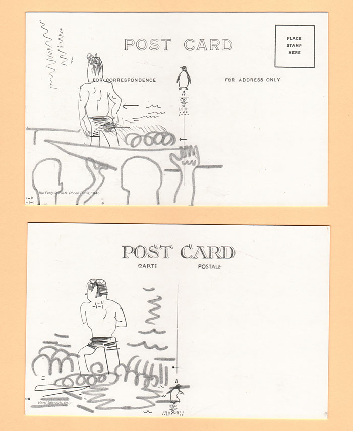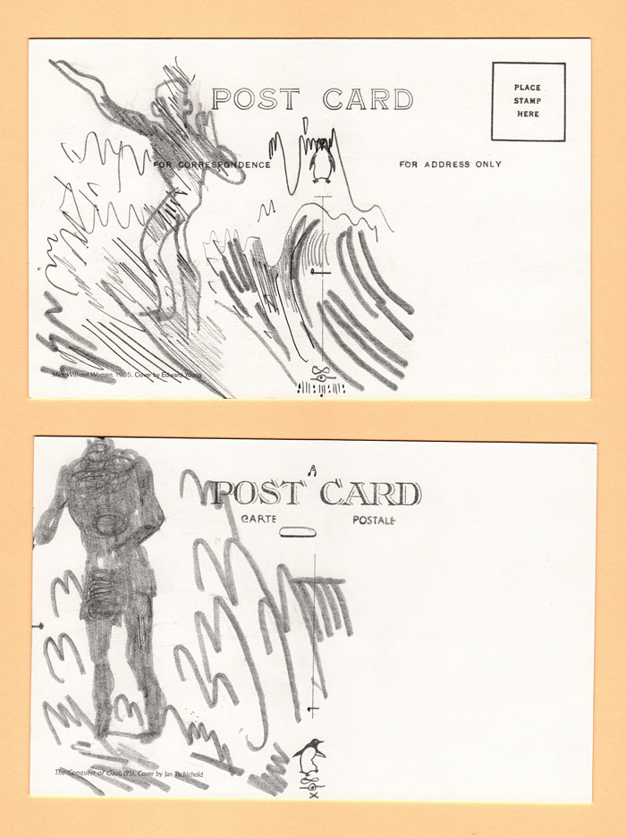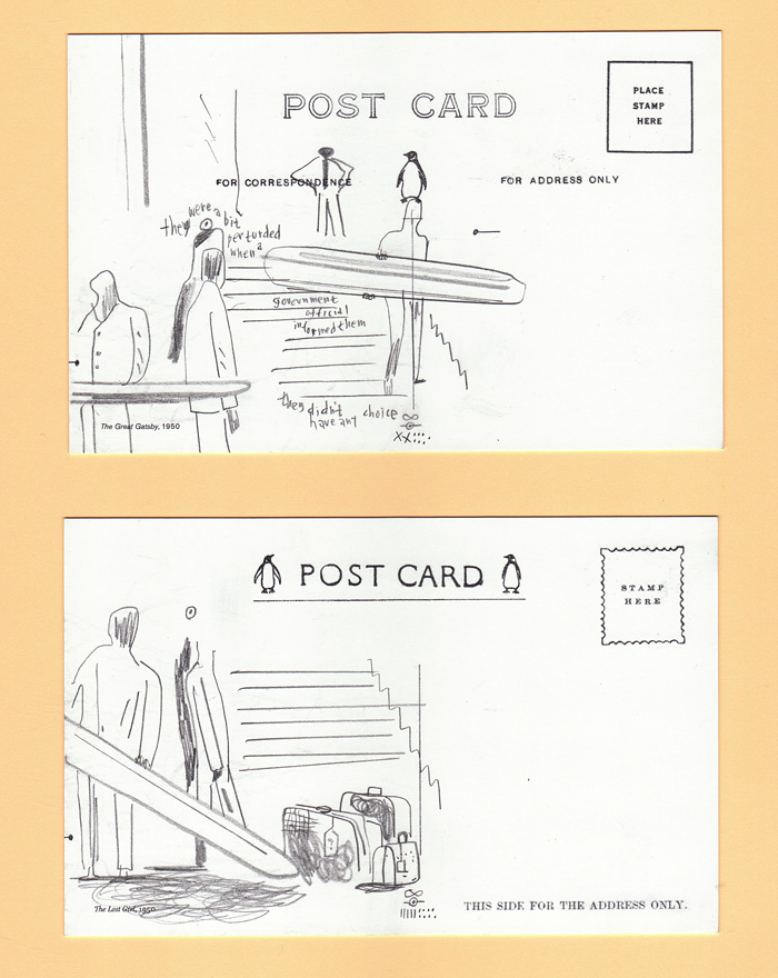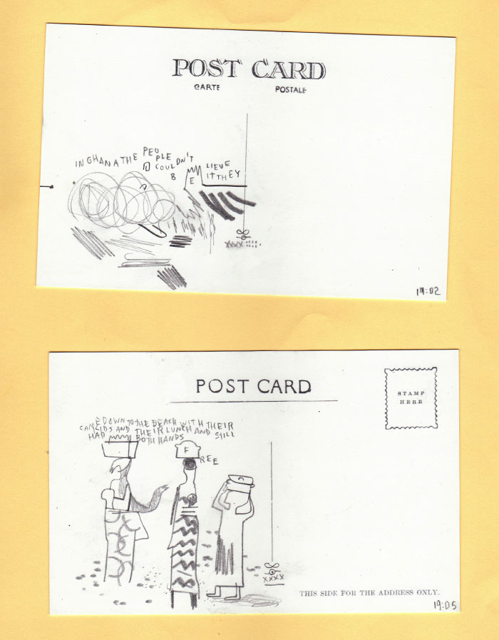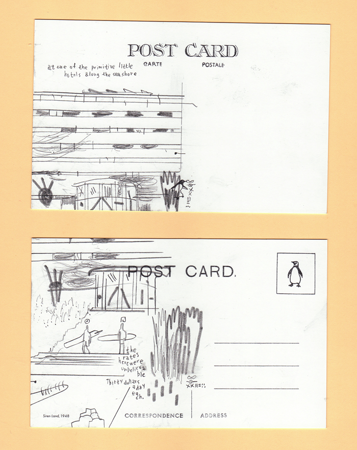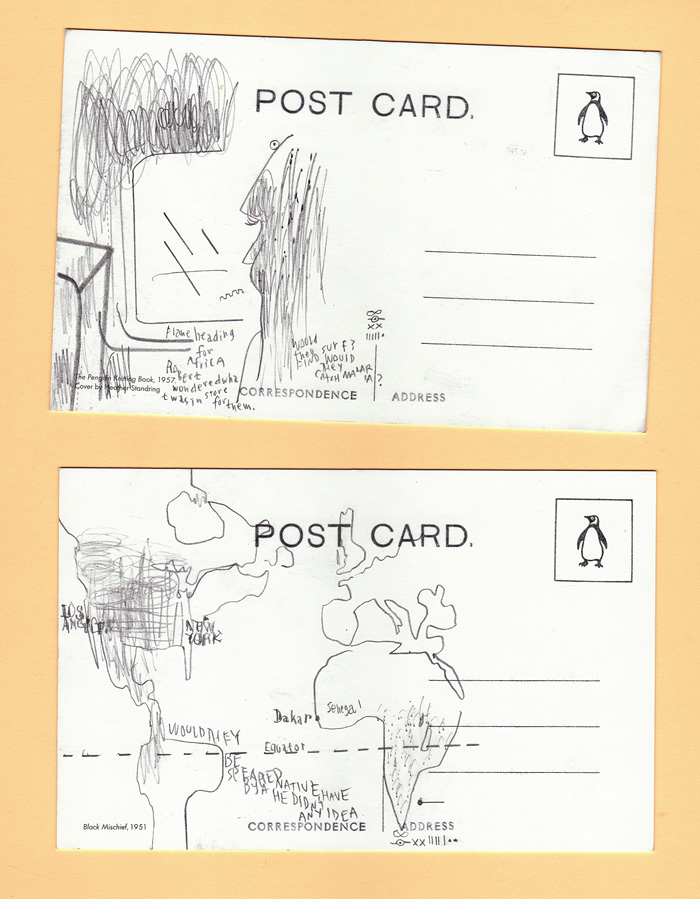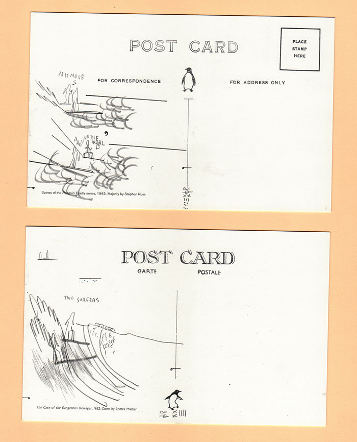 Every shot from Bruce Brown's 1966 film "The Endless Summer" drawn on postcards. More Endless Summer info here.