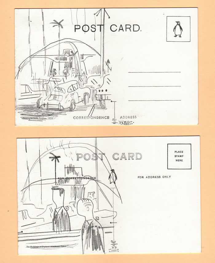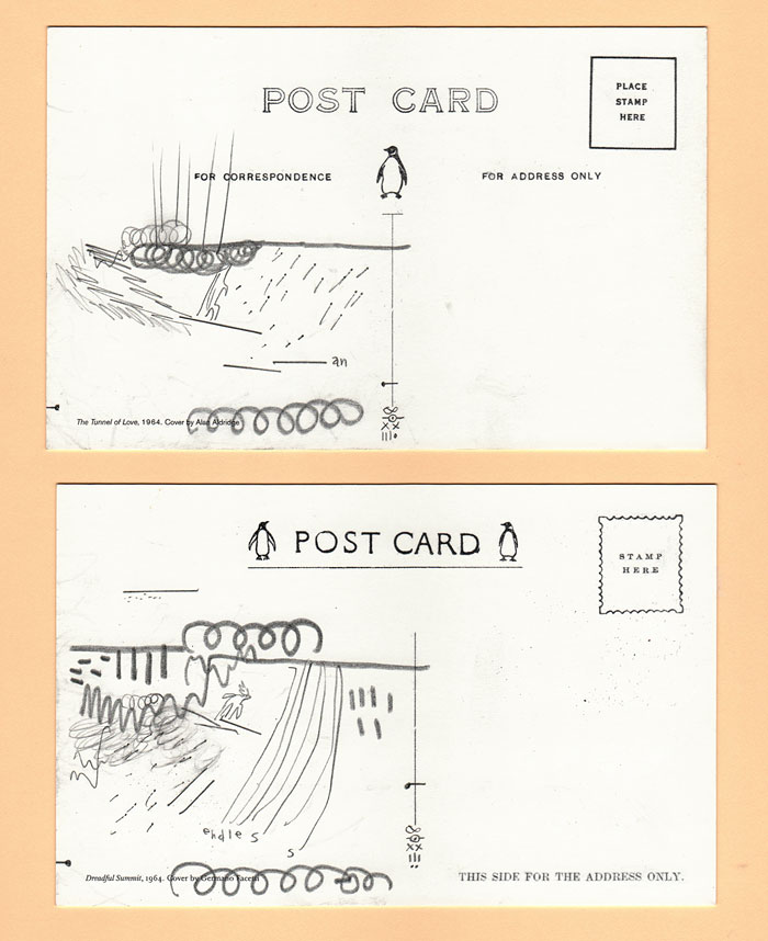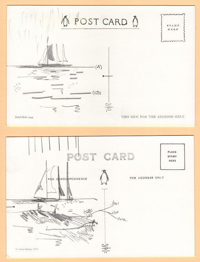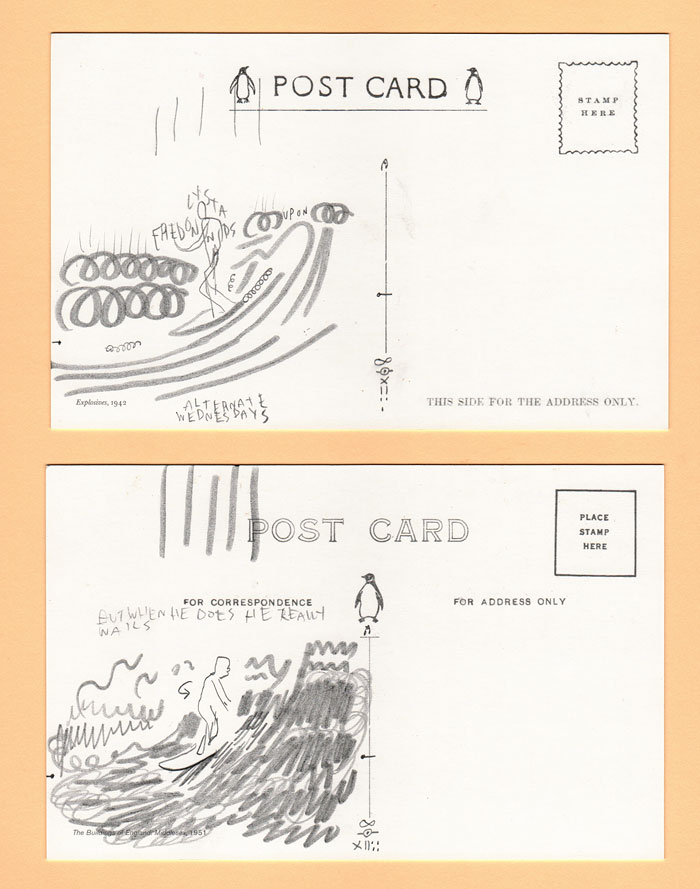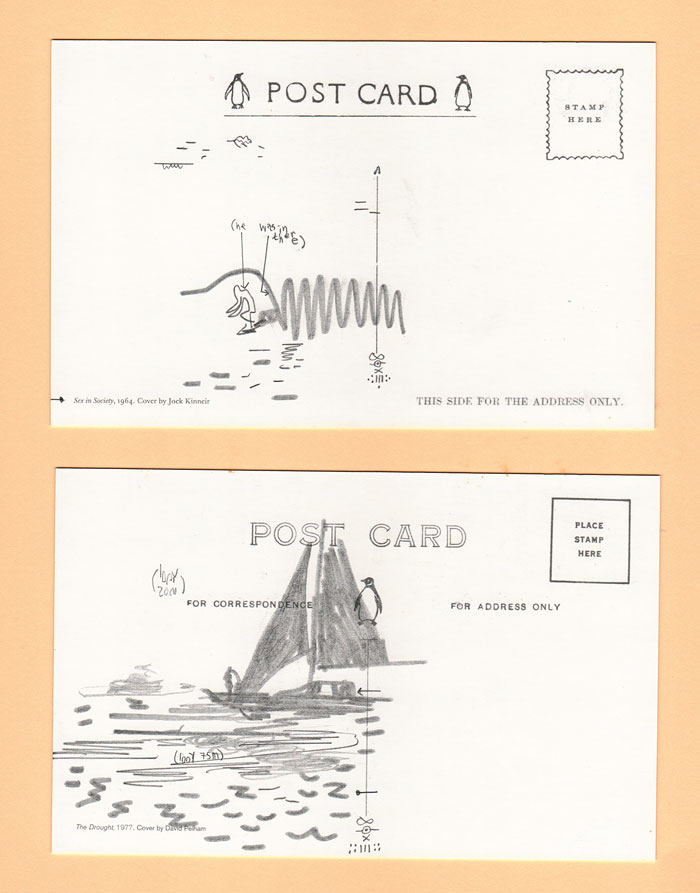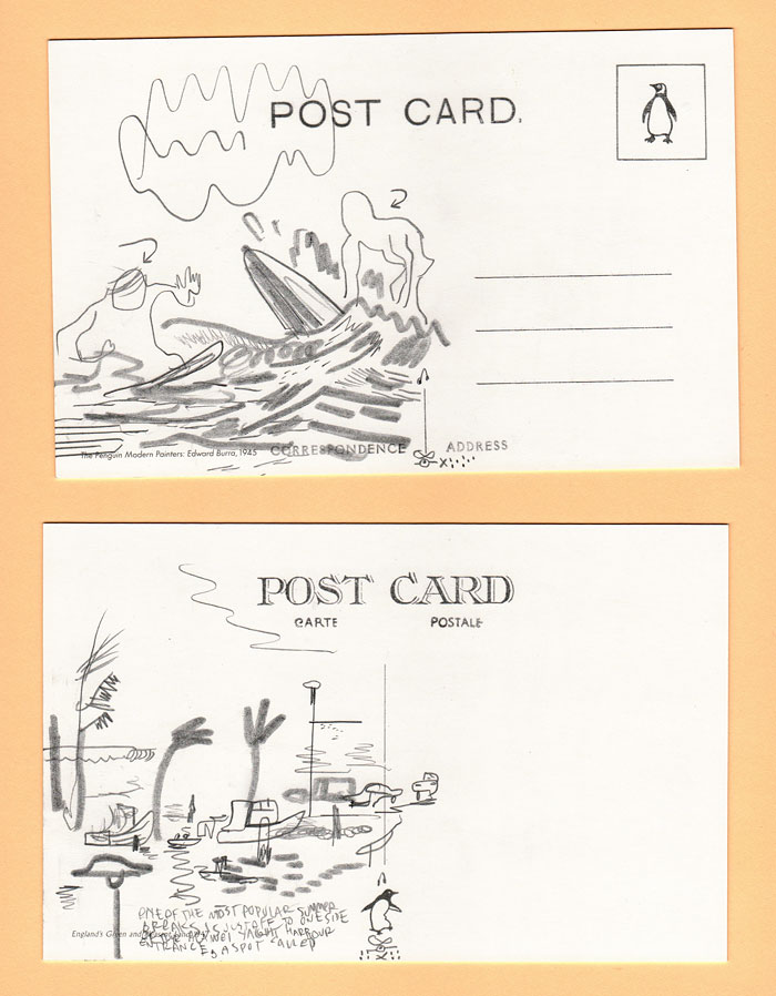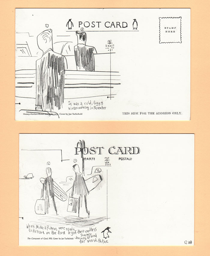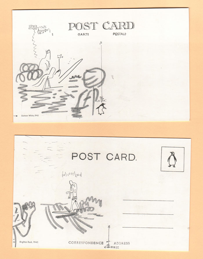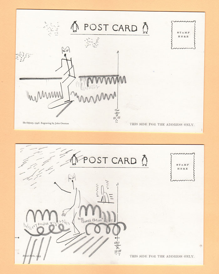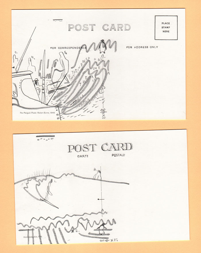 Every shot from Bruce Brown's 1966 film "The Endless Summer" drawn on postcards. More Endless Summer info here.